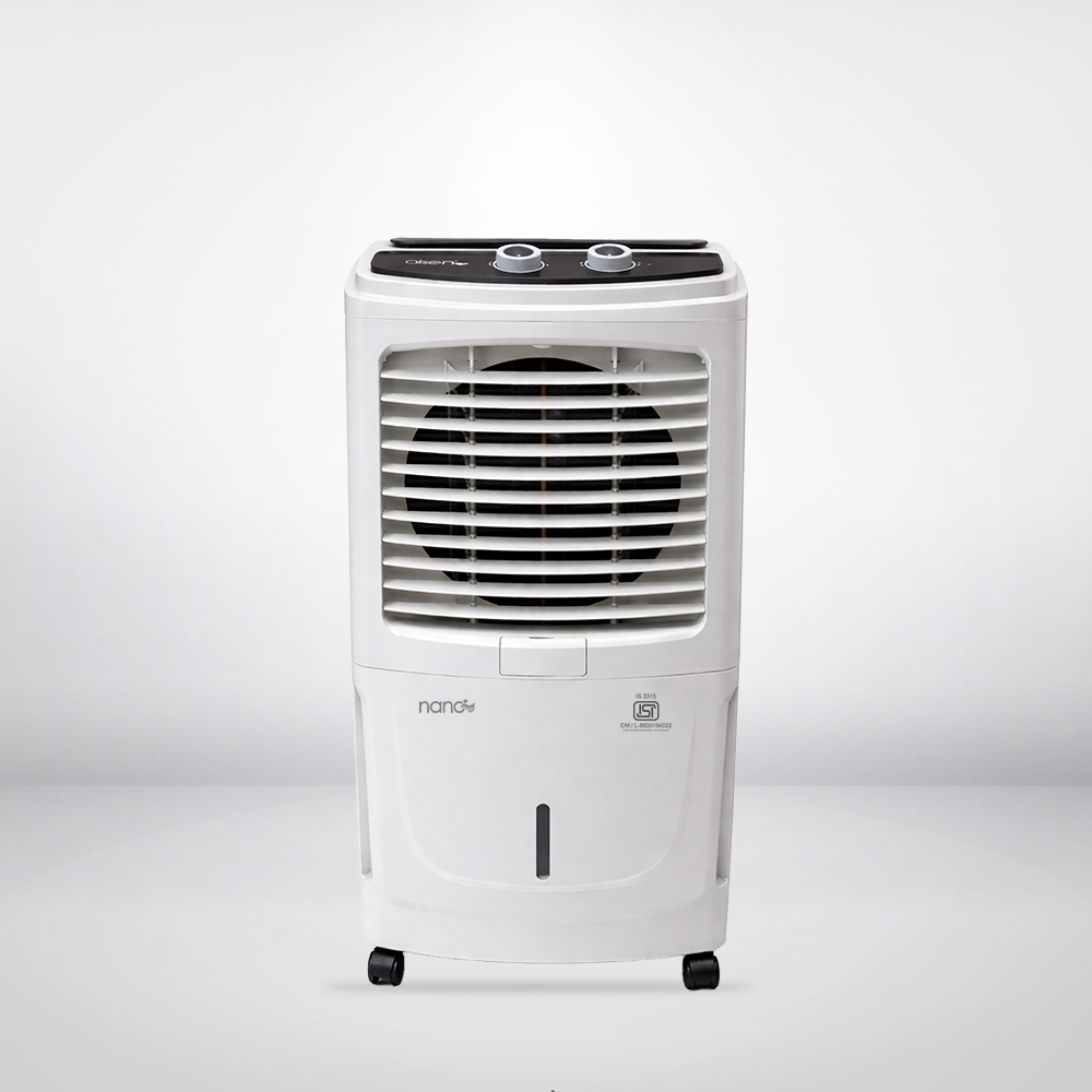 Nano Plus desert coolers comes with higher water tank capacity of 45 Liters for uninterrupted cooling comfort for long hours. Equipped with metal fan blades, Nano Plus air cooler by Aisen are ideally suited for usage in extreme weather conditions to provide continuous cooling comfort with contemporary and elegant aesthetics.